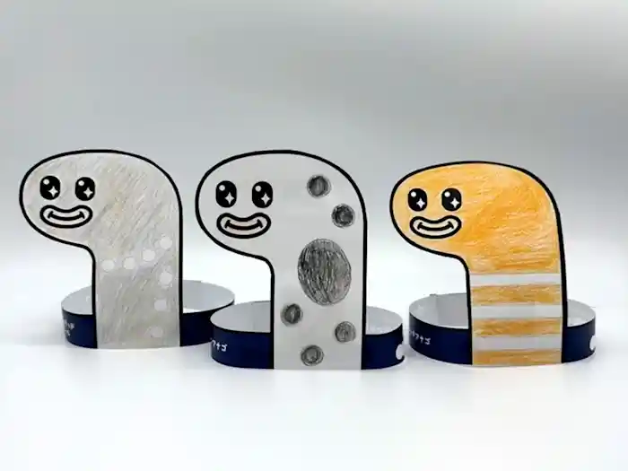 「なりきり!チンアナゴお面作りワークショップ」で、チンアナゴの仲間入りをしませんか?カラフルな絵の具で、3種類のチンアナゴの特徴を自分のお面に反映させましょう。